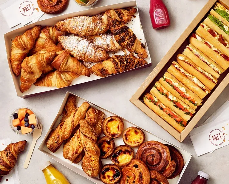 A delivery service offering freshly made breakfast, lunch, and sweet platters straight from Pret kitchens to your home or office. Order by 10am for same-day delivery (some locations require advance notice, but food is always made fresh on the day of delivery).